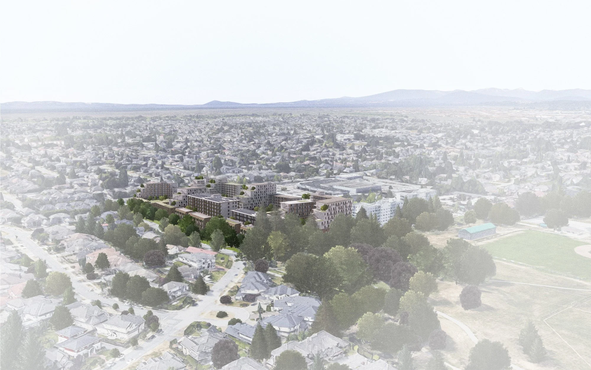 The Rosewood Village Masterplan Project is a BC Housing climate resilience pilot project led by Human Studio. Through a series of interdisciplinary workshops with industry experts, accessibility advisors, existing tenants and the surrounding community, the masterplan evolved from nine wildly diverse concept options into one preferred vision. As a pilot project under BC Housing’s MBAR initiative, Rosewood is also testing several unique approaches to climate resilience, including on-site energy generation, conservation of existing soils for rainwater retention, and a comprehensive urban forest preservation strategy.